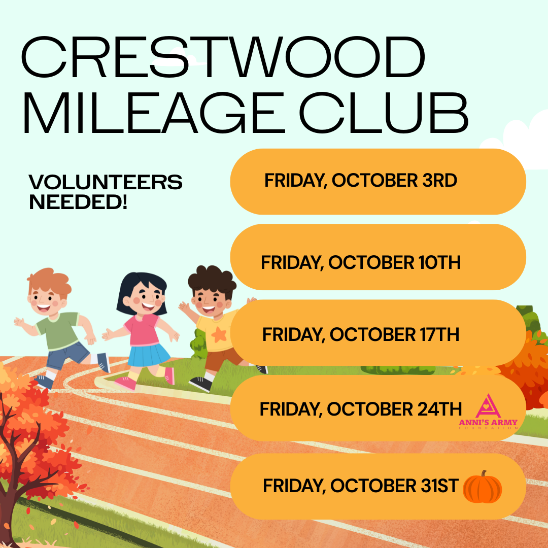 Activity Pass payments are due September 26th. Thank you for your payments - we have exceeded 75% fulfilled payments for the school and are excited to plan many activities for students, staff and families. PTO is looking for motivated members to join our board. Currently we have a Secretary and Vice President position open. Email crestwoodelementarypto@gmail.com for interest.