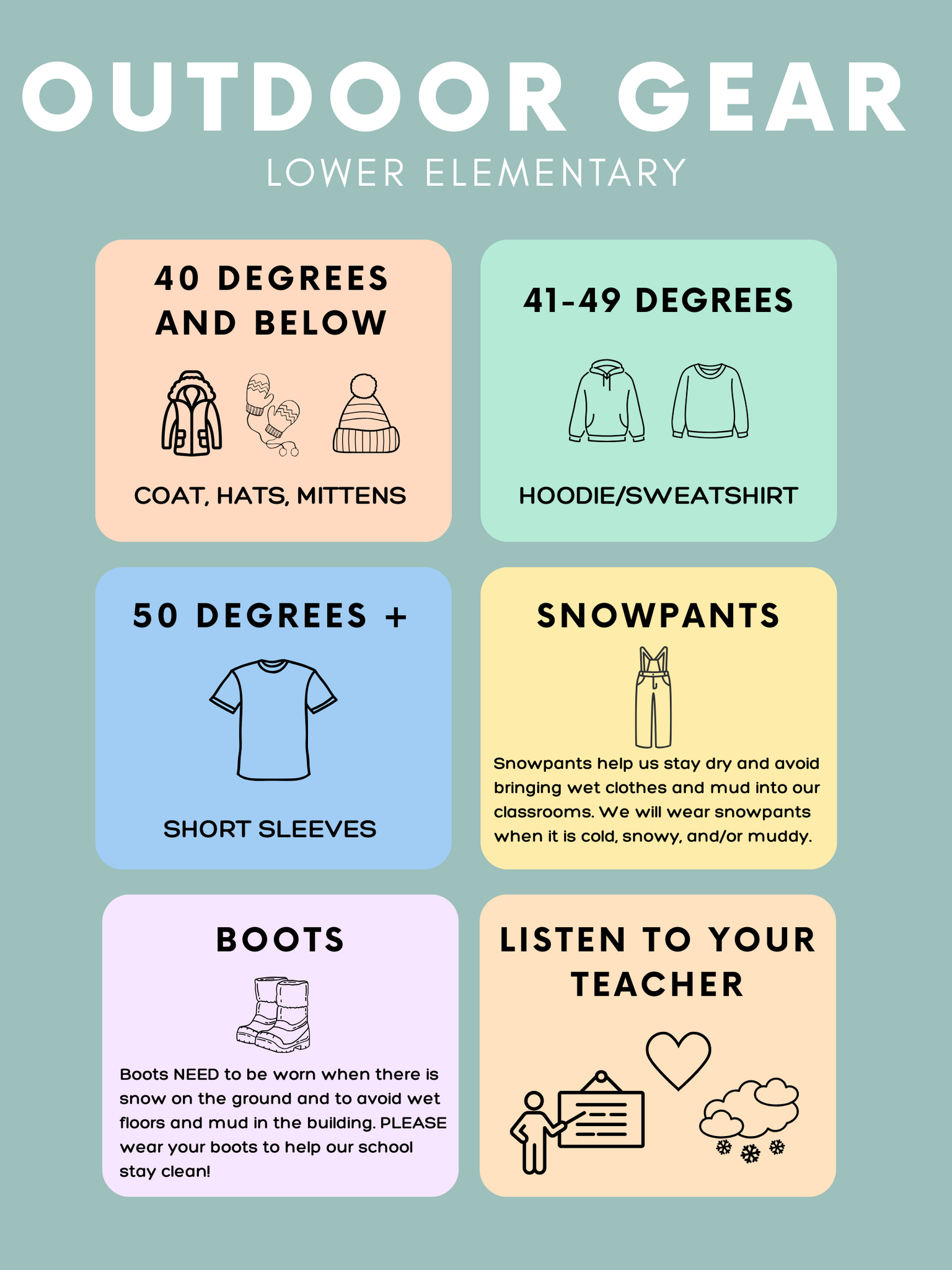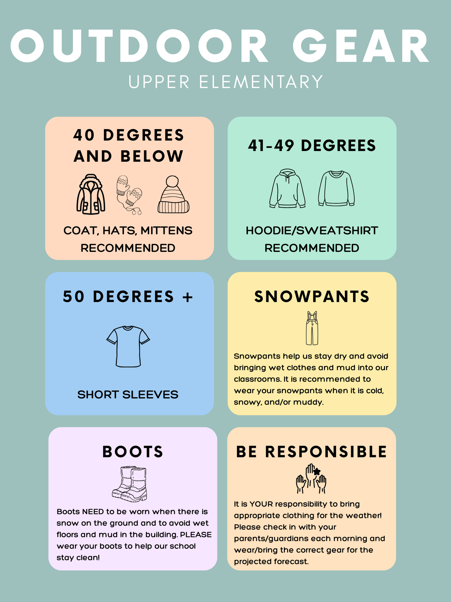 It is recommended that ALL students K-5 keep extra, weather appropriate, clothes in their locker (shirt, pants, underwear, socks, & shoes). Students may need to change due to bathroom accidents, spills in the cafeteria, or getting wet/dirty at recess. We no longer have a Care Closet at the building so having these clothes on hand is highly recommended.