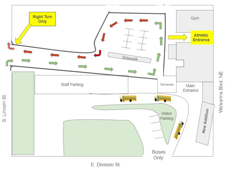 If you choose to drop your child off and/or pick your child up from NRMS, you are required to use the Lincoln Street Entrance. This is the entrance used to access the student drop-off zone and athletic parking lot.