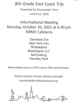 October 20th: 8th Grade East Coast Trip Informational Meeting - 6:30pm