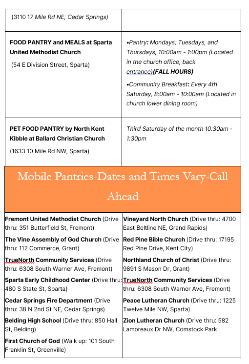 Requested Urgent items by NKC:*Canned/dried fruit (low sugar)*Canned chicken, salmon & tuna*Canned pasta sauce (no glass)*Canned soup (low sodium)*Cereal (low sugar)*Pasta (all kinds)