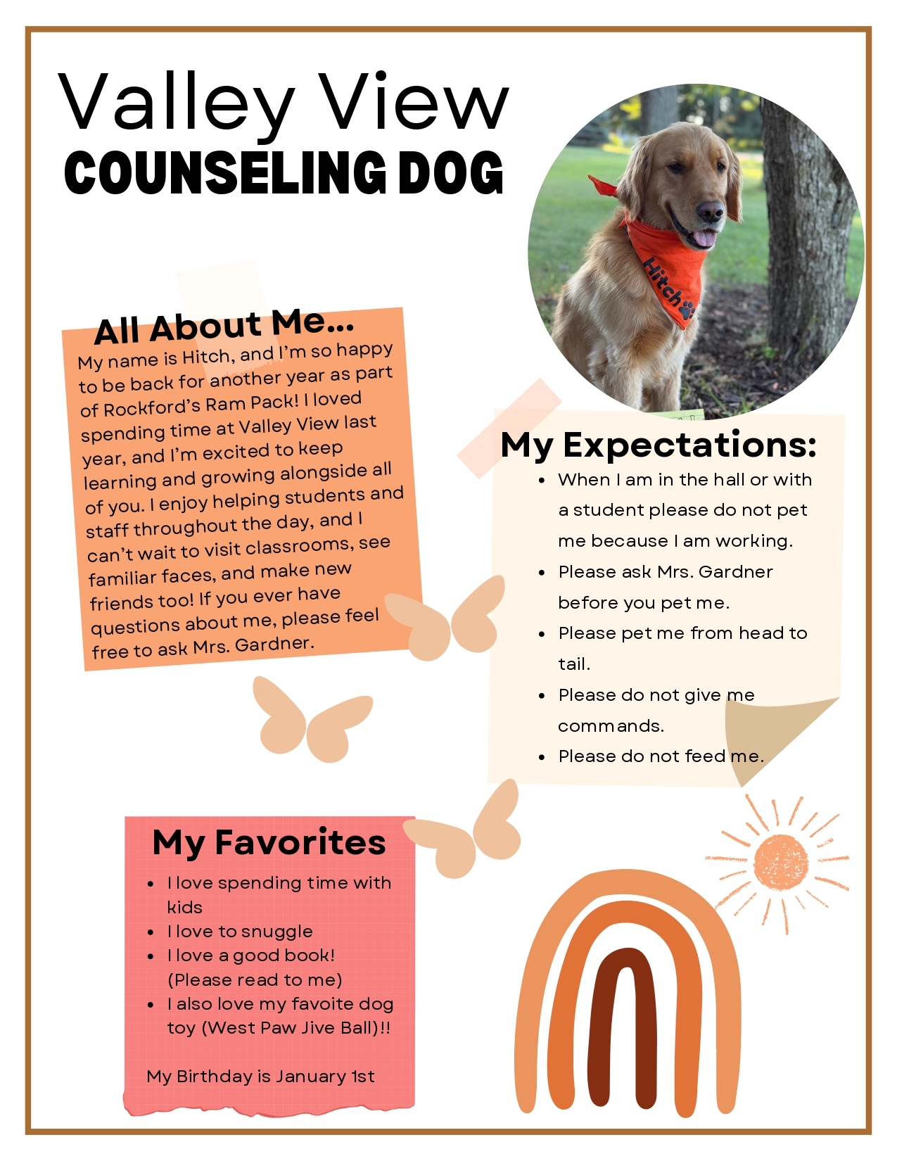 We are getting excited to have Hitch start making visits to classrooms this year!! Want to learn more about our wonder dog? Read on!