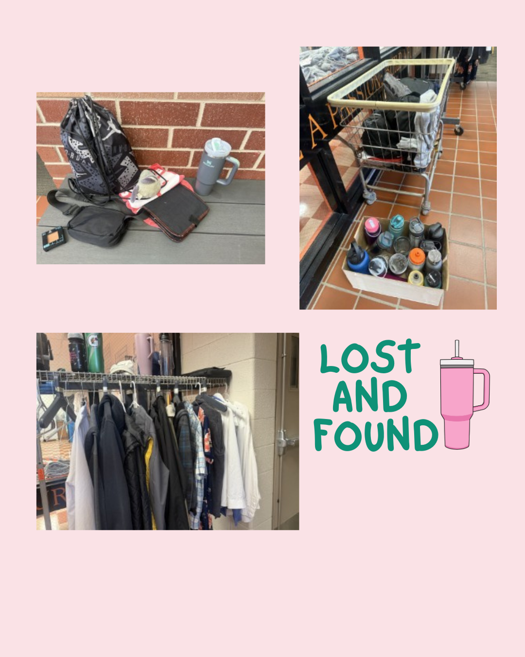 Our lost and found is filling up! Lots of water bottles, sports bags, and other goodies. Please have students check for missing items! If they are missing any electronics from the year please check with the front office!